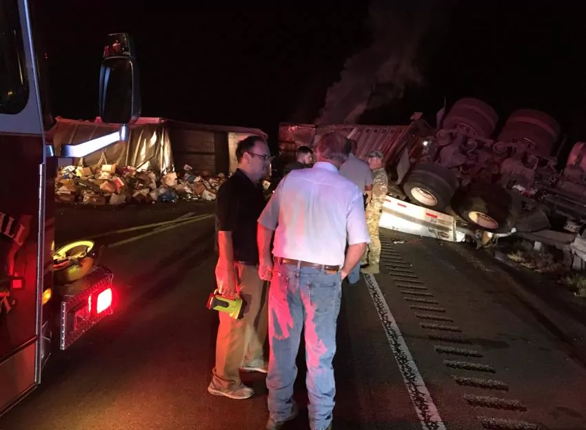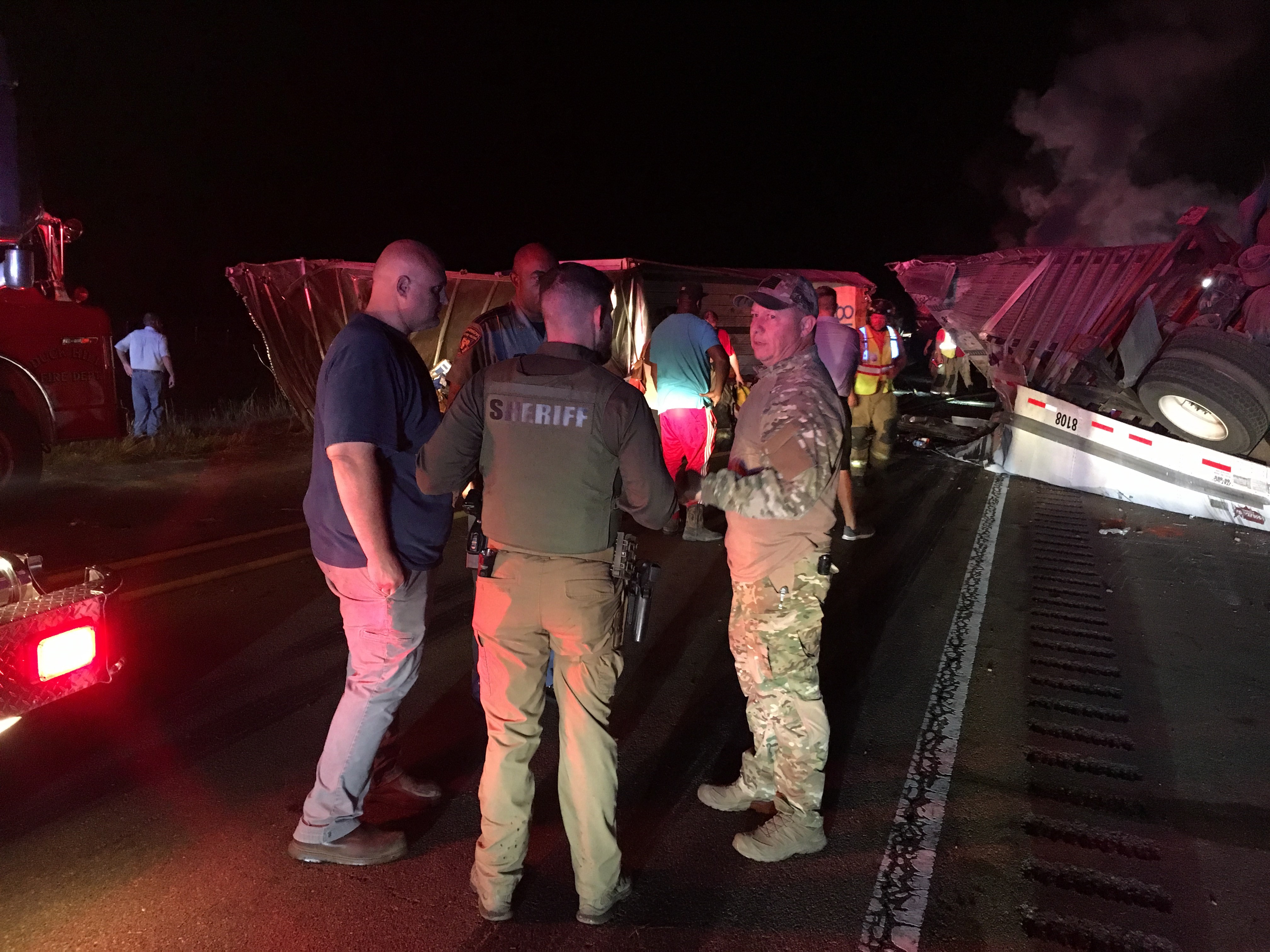“The Carroll County Emergency Operations Center received the call at 2:48 a.m.,” Carroll County Emergency Management/Civil Defense Director Ken Strachan said. “All three 18 wheelers were traveling northbound.”