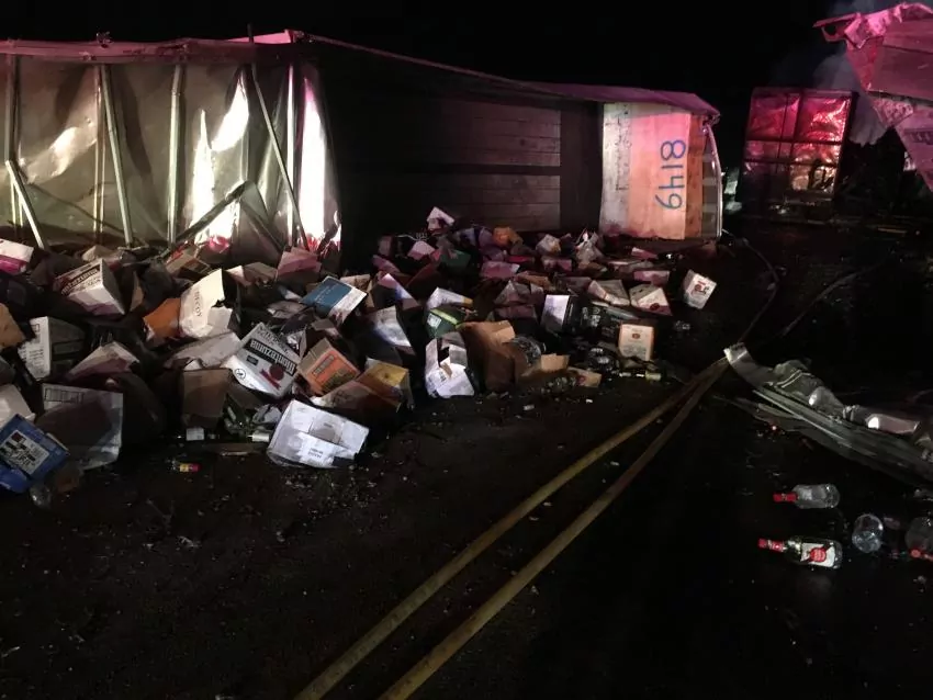 “One of the 18 wheelers was carrying alcohol beverages, that had an additional trailer hooked to it,” Strachan said. “The collision caused a spill that resulted in the interstate being closed and traffic detoured to Highway 51 from I-55.”