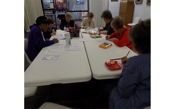 As research for this story, I went to the class to take pictures and colored in the process – also because Wendy Rushing, the librarian, insisted I join the group.