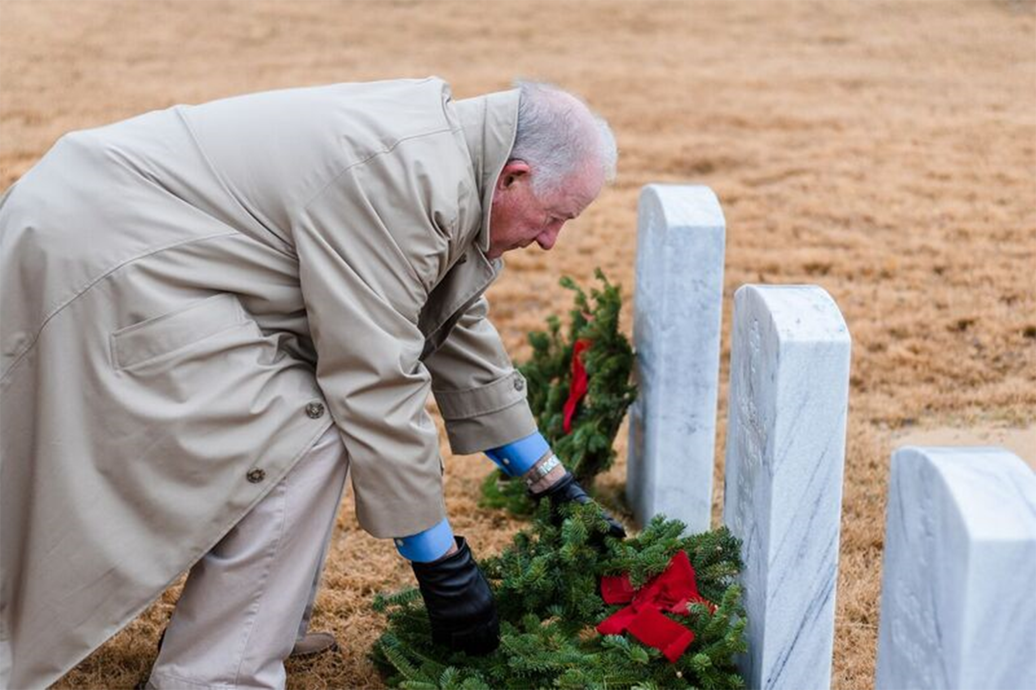 Mississippi Civil Air Patrol SER-MS-057, Golden Triangle Composite Squadron, out of Columbus, led the annual Wreaths Across America ceremony on December 15, 2018, at the North Mississippi Veterans Memorial Cemetery in Kilmichael. National Wreaths Across America Day, held the third Saturday in December, has a mission to remember, honor and teach through a coordinated wreath-laying ceremonies at Arlington National Cemetery, as well as over 1,200 additional locations in all 50 U.S. states, at sea, and abroad. According to Cemetery Director Mark Lawson, Capt. Margaret Middleton led the efforts Saturday. Lawson said 75 attended the ceremony, laying wreaths on 46 gravesites. “I would like to thank all in attendance for their participation,” Lawson said. “As long as we continue to speak the names of the fallen, they will never be forgotten.” Above: Kilmichael Mayor Bobby Howell lays a wreath on a gravesite during Saturday’s ceremony. Veteran and member of American Legion Post #52 in Winona John Laster helps lay wreaths Saturday.