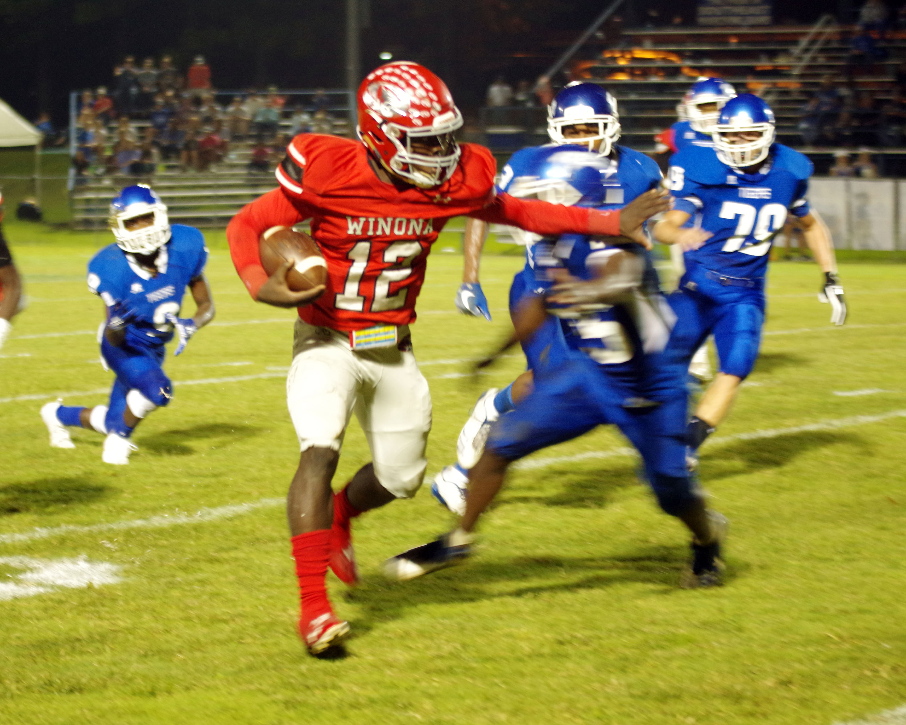 Winona combined offensive and defensive excellence in remaining unbeaten with a 42-14 victory over Southeast Lauderdale. With the victory, the Tigers improved to 7-0 and 3-0 in region 5-3A.