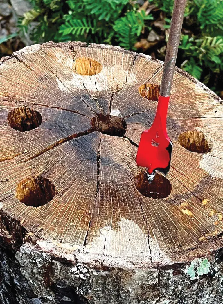 Here’s how: Drill lots of half inch holes as deep as you can go, which let air and water get down deep. Throw dirt over the holes to “inoculate” the wood with fungi, then sprinkle in any kind of nitrogen fertilizer - even lawn food - to provide the nitrogen the organisms need to work quickly. No need for Epsom salts (what an overblown myth!), motor oil, or other gimmicky ingredients, just nitrogen fertilizer.