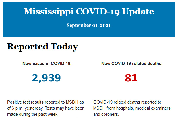 Listed below is the daily COVID-19 update for the state of Mississippi.
