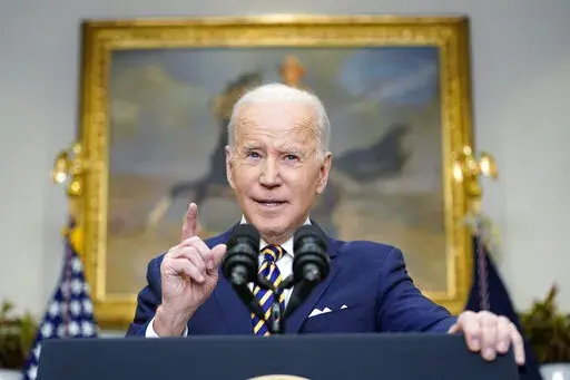 NEW YORK (AP) — With Russia intensifying its war on Ukraine, killing civilians and triggering a mass refugee crisis, President Joe Biden on Tuesday announced a U.S. ban on imported Russian oil. Critics of Russia have said that sanctioning its energy exports would be the best — perhaps only — way to force Moscow to pull back.