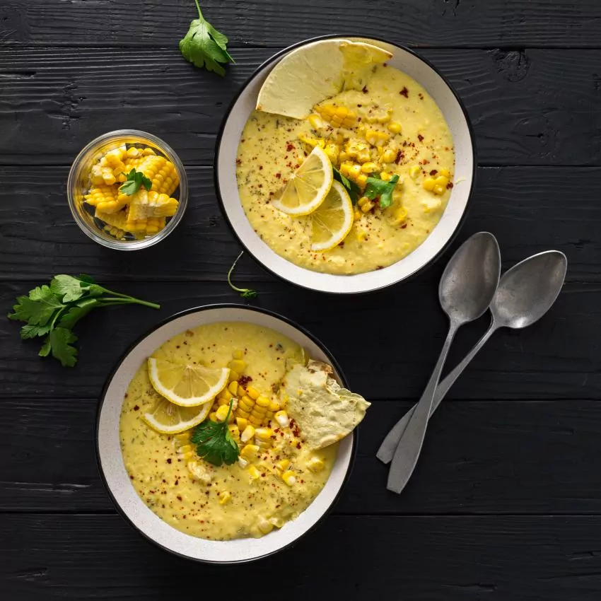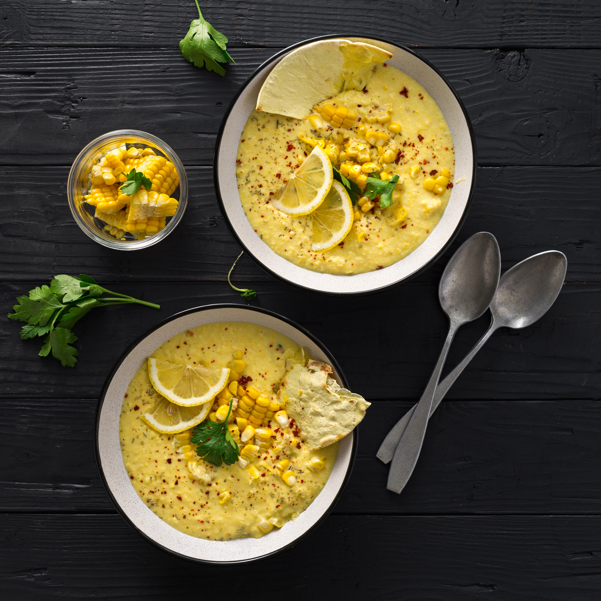 Cut corn kernels from cobs using a sharp knife. Reserve 1 cup corn kernels. Place remaining corn kernels in a 5- to 6-quart slow cooker. Working over a rimmed pan, use the back of the knife to scrape cobs to release all juices from cobs. Add corn milk, stock, potatoes, yellow onion, thyme sprigs, garlic, salt, and pepper to slow cooker.
