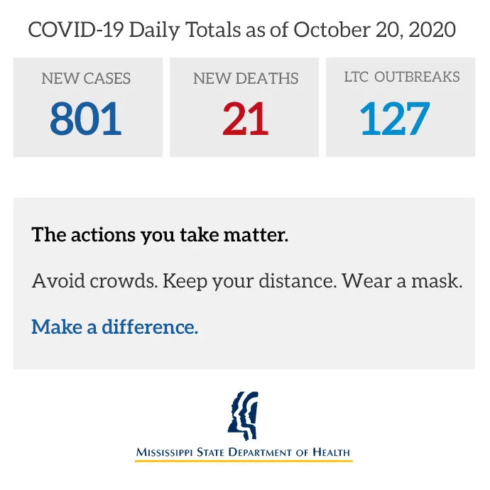 When statewide numbers were released Thursday and Friday, both days reported 1,000 new cases in Mississippi. Locally, Carroll County saw a significant increase of over 100 cases, a huge jump from its previous numbers, with the increase reportedly stemming from an outbreak at the Carroll-Montgomery Regional Correctional Facility.