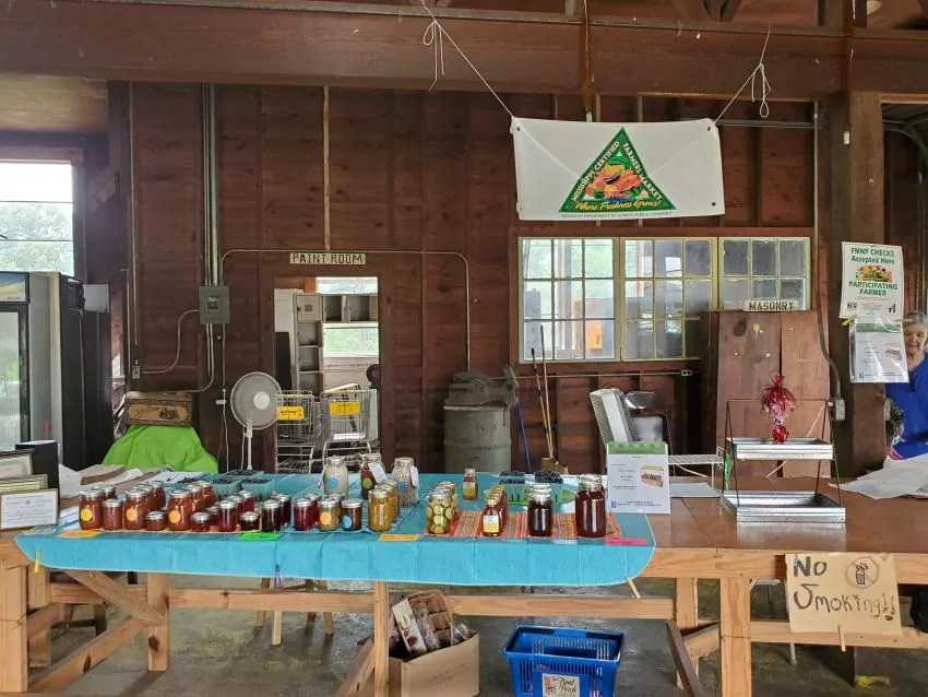 A variety of local fruits and vegetables as well as honey, jellies, and several other homemade goods are available for purchase.