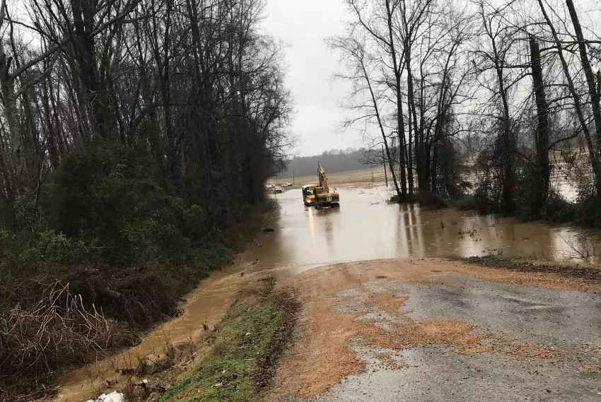 Montgomery County Emergency Management Director Alan Pratt said that Gordon Road had water over the road, and Sweet Home Road was washed out Tuesday afternoon. He said a bus got stuck in the water attempting to take students home on Hendrix Road, just to the north of Lower Milligan Springs Road in Kilmichael.