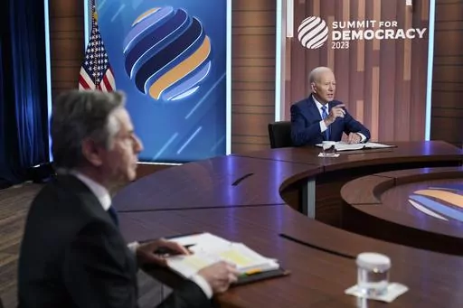 Opening his second democracy summit, Biden looked to spotlight hopeful advancements over the past year despite Russia's war in neighboring Ukraine and U.S. tensions with China over its military and economic influence in the Indo-Pacific and beyond.