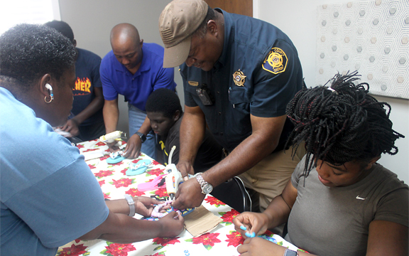 For their mission project, the children “made shoes” by wrapping fabric around the thong of a flip flop and hot gluing them together. Calbrina Woods, founder of Blessings for All Empowered by Faith, told the children that she was contacted to do the project by a group of missionaries who would be traveling the Guatemala.