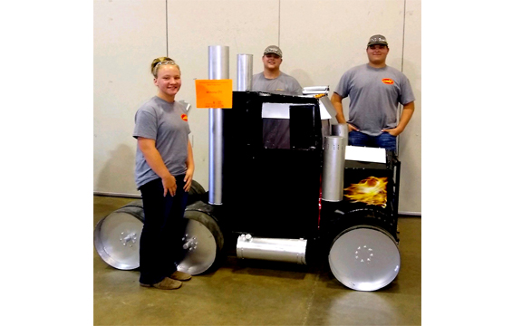 Sarah Winters, Jacob Brannon, and Rhett Oliver, named Team Triple Threat by teacher Greg Wenger, won first place for constructing a fire pit crafted after a semi-truck.