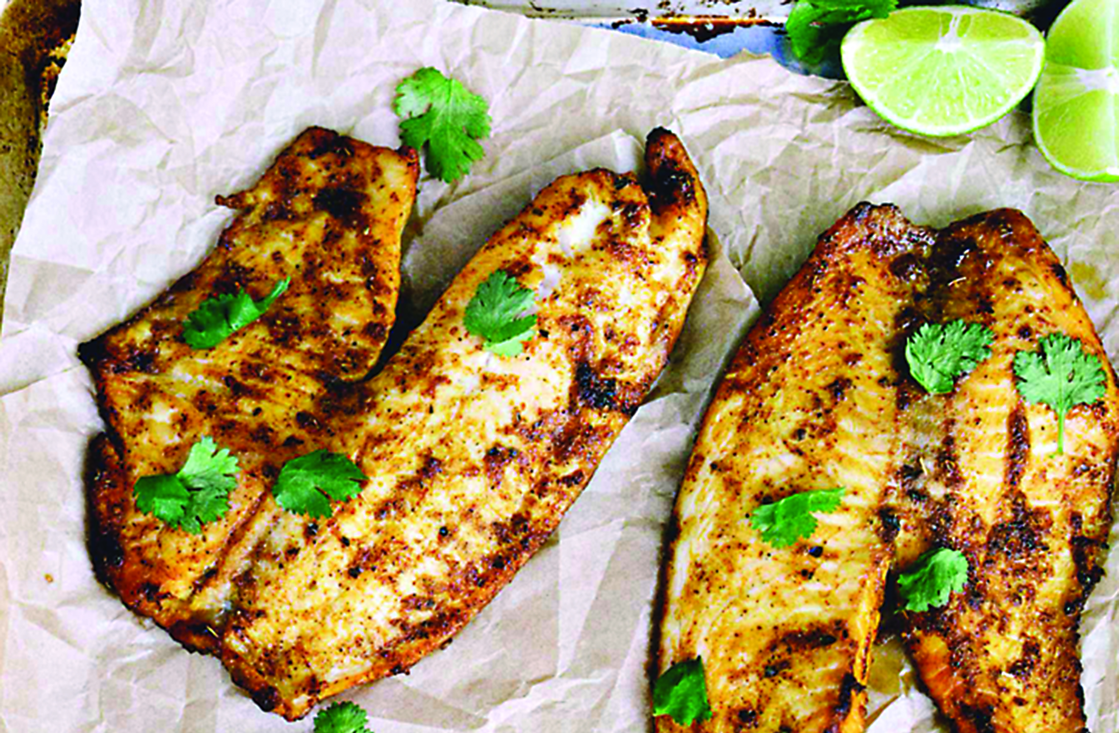 The following recipe for “Broiled Chili-Lime Crusted Tilapia” from Laurie McNamara’s Simply Scratch: 120 Wholesome Homemade Recipes Made Easy (Avery) checks all the boxes, as it’s flavorful, easily prepared and cooks in roughly 20 minutes or less.