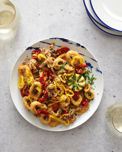 Transfer the calamari to paper towels, season with the salt, and let drain for 1 minute, then transfer to a large bowl. When all the calamari is done, quickly toss with the pepper mixture.