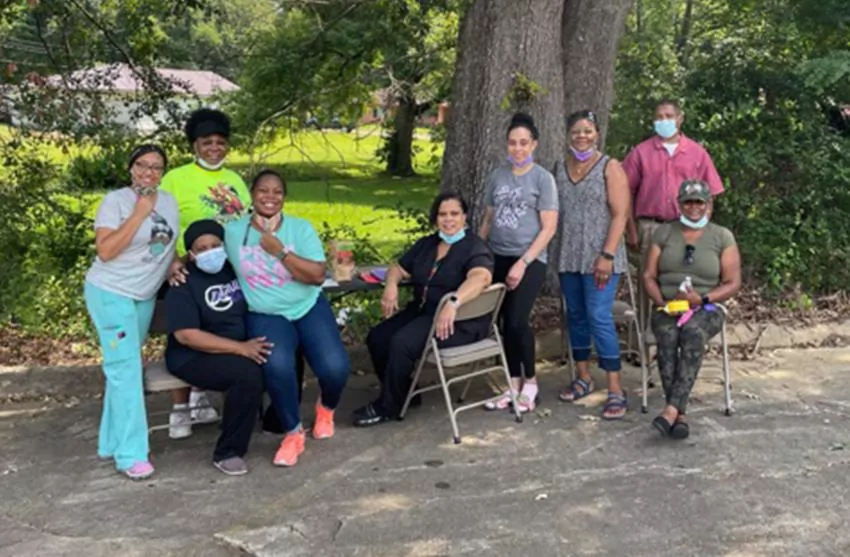 Volunteers assist at Winona Baptist Church’s pop-up COVID-19 vaccine clinic held Saturday in the church’s parking lot. Pictured are Cisali Alexander, Debra McKinney, Kimberly Melton, Vickie Baskin, Leah Crawford, Hazel Knight, Harvey Butts, and Beverly Tate. Other Volunteers included Brittany Wallace, McKinley Wallace, Jamilia Stephens, Tylenesha Bibbs, Della Hearn, Orman Knox, LaPreston Holmes, Ricky Bibbs, Glen Hobbs, Arica Anderson, and Pastor and Mrs. Mark Williamson.