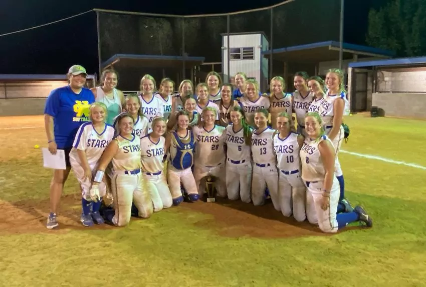 The Stars banged out 13 hits and took advantage of six errors and took a run-rule win over the Lady Raiders on Saturday in the championship game.