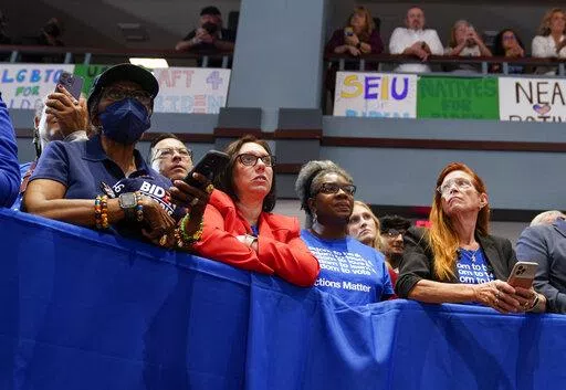 “If Republicans win control of the Congress abortion will be banned,” Biden said. He also criticized other GOP lawmakers for proposals to require reauthorization votes for Social Security and Medicare and opposition to gun control laws and efforts to lower prescription drug costs.