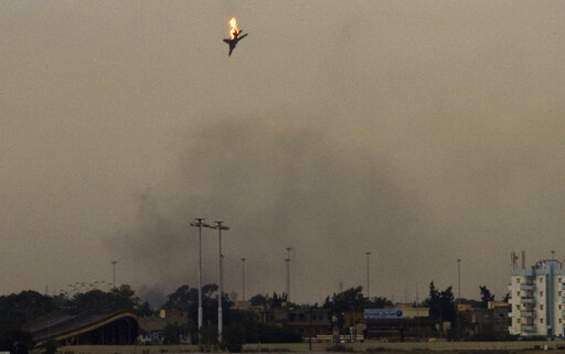 THE FACTS: As Russia unleashed airstrikes and ground attacks across Ukraine on Thursday, social media users shared old and out-of-context videos falsely claiming they showed the invasion. Among them was a video of a plane plummeting from the sky and crashing in flames, falsely identified as a Russian fighter jet being shot down in Ukraine. The video, which is from The Associated Press, shows a warplane in Libya being shot down by rebels in March 2011. Also misrepresented was a video that featured multiple clips of jets flying in various formations across a cloudy daytime sky, with trees, buildings and power lines visible in each frame. A reverse-image search revealed the video is nearly two years old, and was captured during a rehearsal for the 2020 Victory Day parade in Moscow. A version of the video was posted to YouTube on May 4, 2020. A Russian-language caption identified it as the “air part” of a “parade rehearsal.” Meanwhile, a photo of a plane consumed by flames was shared widely, falsely identified as a Russian jet shot down by Ukraine. It was actually a mirrored version of an image that dates back three decades. According to a photo caption, it shows a pilot ejecting from a burning Russian MiG-29 after it collided with another during an airshow in the U.K. in July 1993. The photo is credited to Carl Ford, who posted the image on his Flickr account as well. Ford confirmed in an email to the AP that the image being shared online is his and that he took it at the 1993 Fairford airshow.