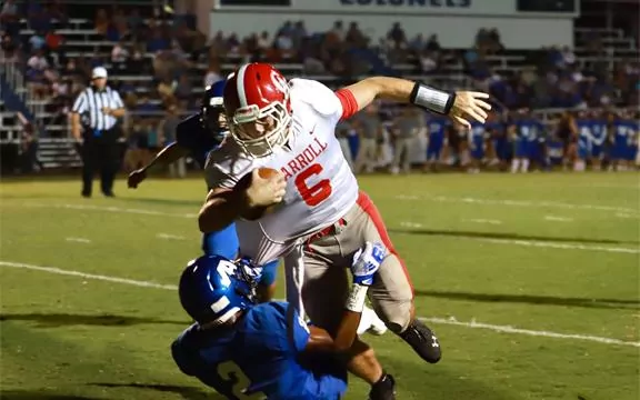 Carroll then responded with a quick three-play drive as Hunter Bracken scored on a 7-yard run with 3:49 left in the first quarter. Morgan Mims scored the two-point conversion and Carroll led 8-0.