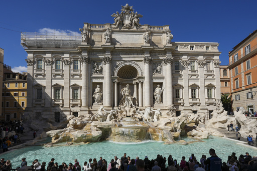 ROME (AP) — The Trevi Fountain, arguably the world’s most famous, has graced screens for decades, from Fellini’s “La Dolce Vita” to Netflix’s “Emily in Paris.” Each year, millions of visitors push through Rome's narrow streets to gaze at the towering Titan god flanked by falls cascading into a turquoise pool.