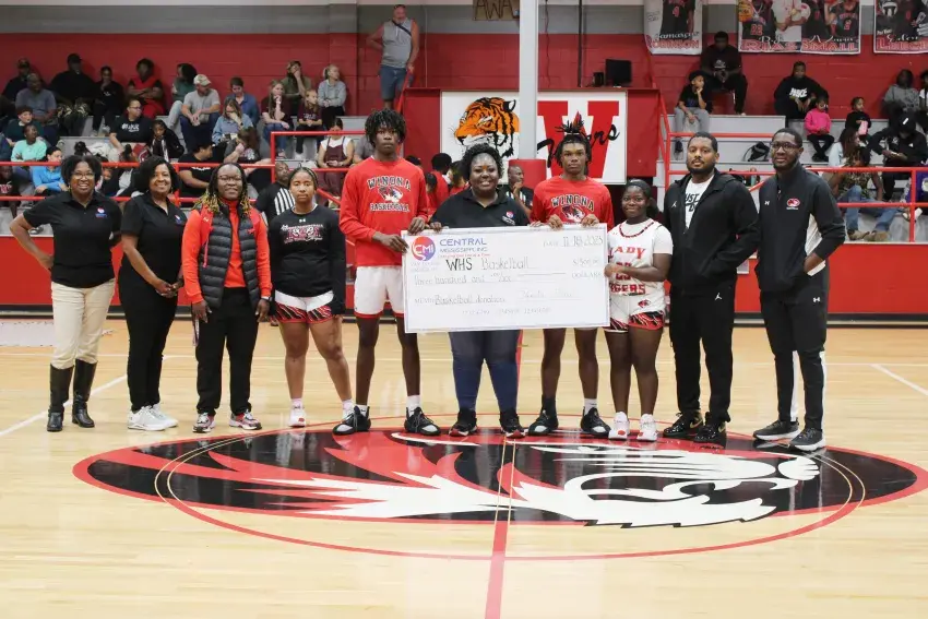 WHS basketball teams presented with check.