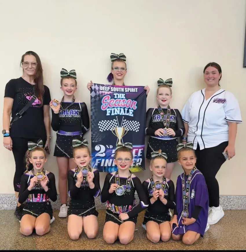 Back Row: Coach AJ Guerra, Tinlee Dunlap, Ainslie Bruce, Macy Kiker, Head Coach Laurel Guerra. Front Row: Macy Campbell, Blayne Herring, Tatum Dunlap, Elly Barnes, Blair Herring. Not pictured Coach Savannah Herring and Coach Presley Haddon. (Photo special to The Times/Conservative)