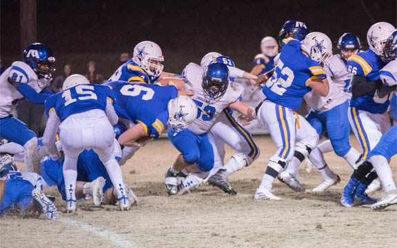 The Stars had 93 yards rushing and 124 passing for 217 total yards. Wiggins had 65 yards rushing on 11 carries and 55 yards receiving on five catches. Diffey had 66 yards receiving. White was 10-of-14 passing for 124 yards. Ben Pinkard, Bradley Pinkard and Latham Hill each had six tackles apiece.