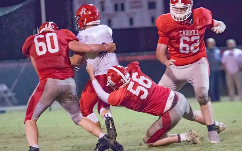 After an Oak Hill punt, the Rebels got moving again, going 89 yards in four plays. After a 20-yard run by Lofton Holly, Mims ripped off a 47-yard run. Holly finished off the drive with a 2-yard run and Jon Marc O’Cain ran in the two-point conversion as Carroll extended the lead to 36-6.