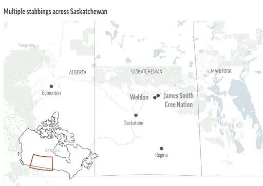 The stabbings took place in multiple locations on the James Smith Cree Nation and in the village of Weldon, northeast of Saskatoon, police said.