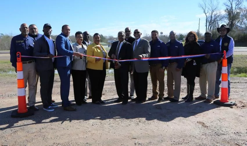 Pictured left to right: Carroll County Sheriff Clint Walker; District 2 Engineer James Mitch Turner; Carroll County Maintenance Superintendent John Johnson; Northern Transportation Commissioner John Caldwell; Maintenance worker Jamie Hearn; Southern Transportation Commissioner, Chairman Tom King; Central Transportation Commissioner Willie Simmons; District 2 Maintenance Engineer Brian Childs.