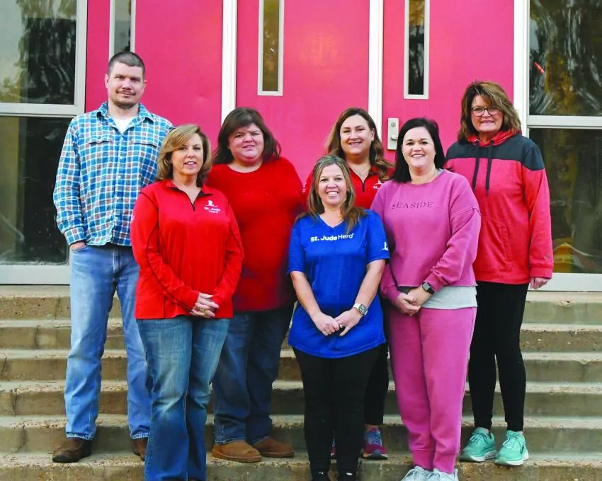 Representatives from the Winona Montgomery Consolidated School District will participate in the St Jude race on Saturday, Dec. 3. Pictured are (row one) Susan Ricks, Amber Austin, Jennifer Ingram, Becky Dees, (row two) John Parks, Erica Parks and Belinda Morrison.