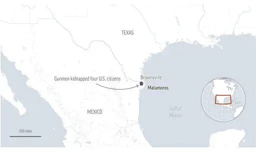 The four were traveling Friday in a white minivan with North Carolina license plates. They came under fire shortly after entering the city of Matamoros from Brownsville, at the southernmost tip of Texas near the Gulf coast, the FBI said in a statement Sunday.