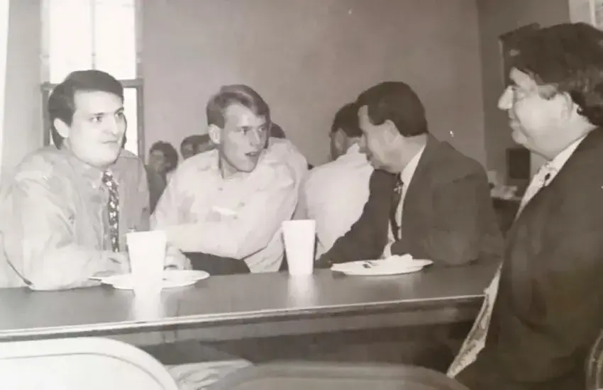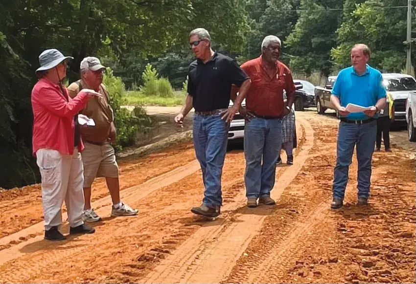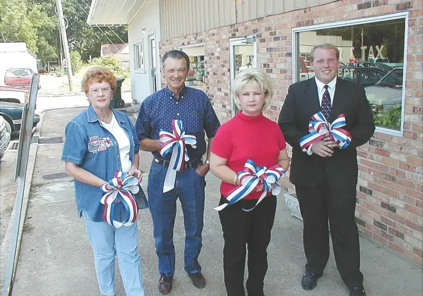 In the days following the September 11, 2001, terrorist attacks, red, white, and blue ribbons were placed on businesses in North Carrollton to show support for the United States. Pictured from left: Diane Slocum, George Milton Slocum, Shelia Strachan, and Ken Strachan. (Photo special to The Times/Conservative)