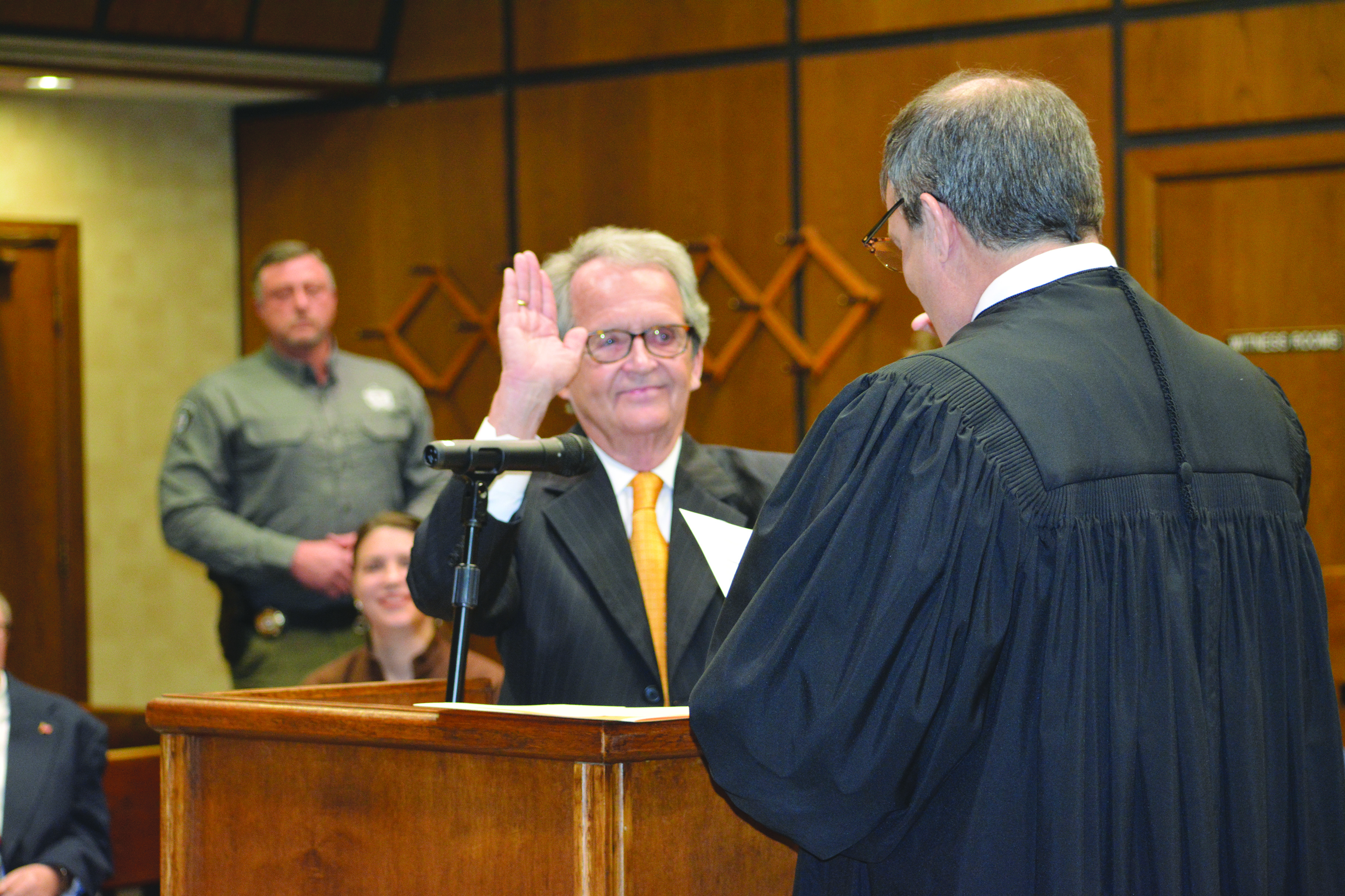 After swearing the oath on his mother’s Bible and receiving his new gavel from his wife, Rosemary, Lancaster expressed his appreciation to everyone present and those unable to attend, sharing his victory with each of them.
