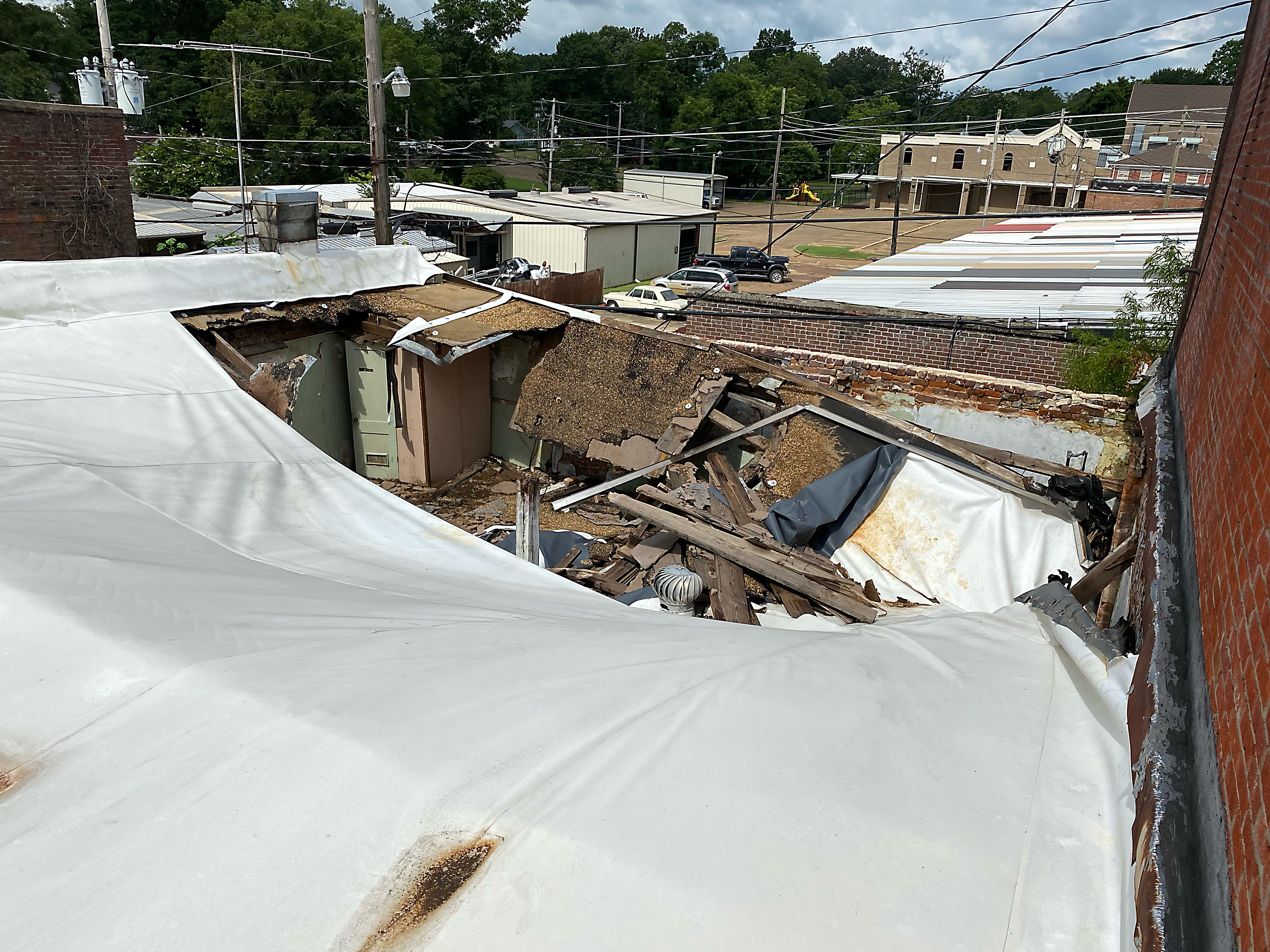Due to the historic nature of the building involved, as well as the surrounding buildings, Senator Lydia Chassaniol and the Mississippi Department of Archives and History have been notified on future steps to sure up the building in an effort to preserve the historic storefront.