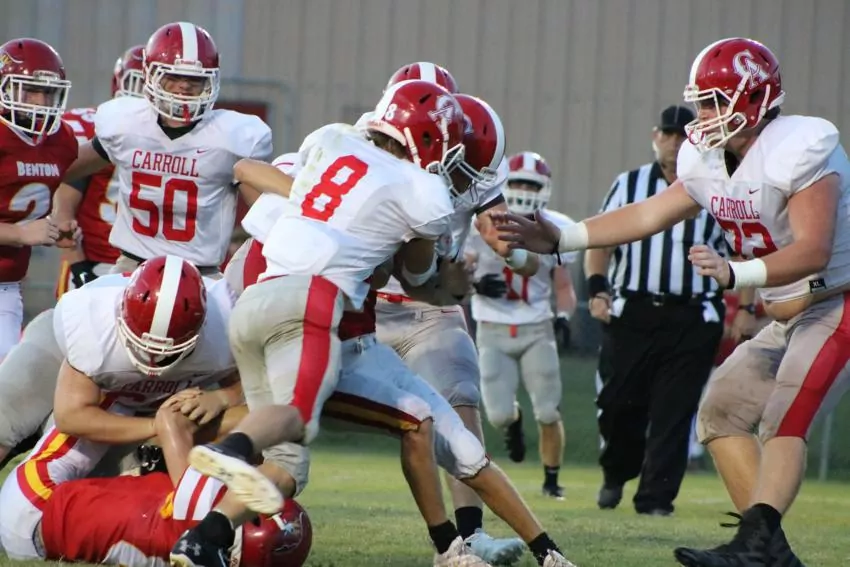 The Carroll defense struck again as Noah Beck intercepted a Benton pass and returned it 35 yards for a touchdown. Grantham booted the PAT, and Carroll led 28-0 with 5:52 left in the first half.