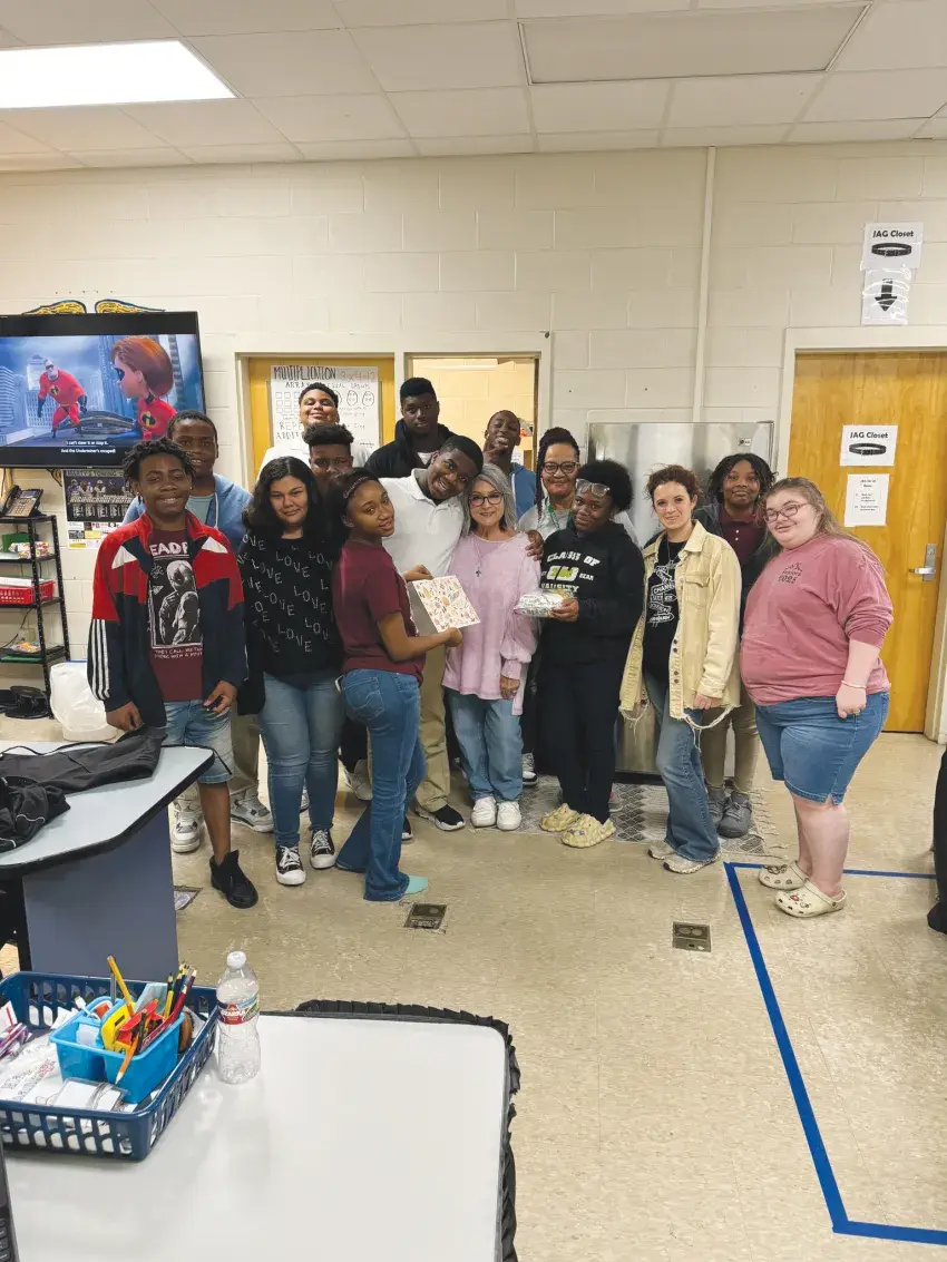 J.Z. George students showed their appreciation for teachers and staff by preparing a special meal. Working alongside Mr. Jones, who taught grilling techniques, students cooked baked chicken, potatoes, and salad for staff members who've impacted them.