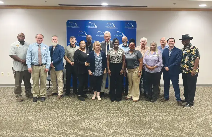 MEMA District 3 Coordinator Jason Doyle, North Carrollton Mayor and North Central Mayor’s Association President Ken Strachan, MEMA Director of Public Assistance Mike Siler, Kosciusko Mayor Tim Kyle, Vaiden Mayor Liesa Hemphill, Duck Hill Mayor and North Central Mayor’s Vice President Al White, State Senator Lydia Chassaniol, Water Valley Mayor Tommy Reynolds, Itta Bena Mayor Mary Tyes-Williams, Lexington Mayor Percy Washington, Oakland Mayor Stephanie Patterson Andrews, Kilmichael Mayor Tommy Rushing, Ethel Mayor Gwen Sims, North Central Planning and Development Assistant Director John Wiggers, Assistant Deputy State Treasurer Tate Lewis, and Grenada Mayor Charles Latham.