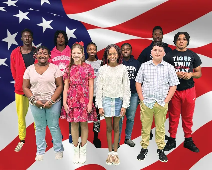 Pictured, first row, Janasia Campbell, Lexie Burton, Ar'Janique Ward, and Ruben Guzman. Pictured, second row, Jay Hardiman, Tristan Richardson, Zuri Townsend, Jakarria Burnley, Troylando Eden, and Ajerrian Garrett. Not pictured is DJ Forrest and Antrion Kinnel. (Photo by Becky Dees ©2024 Emmerich Newspapers, Inc.)