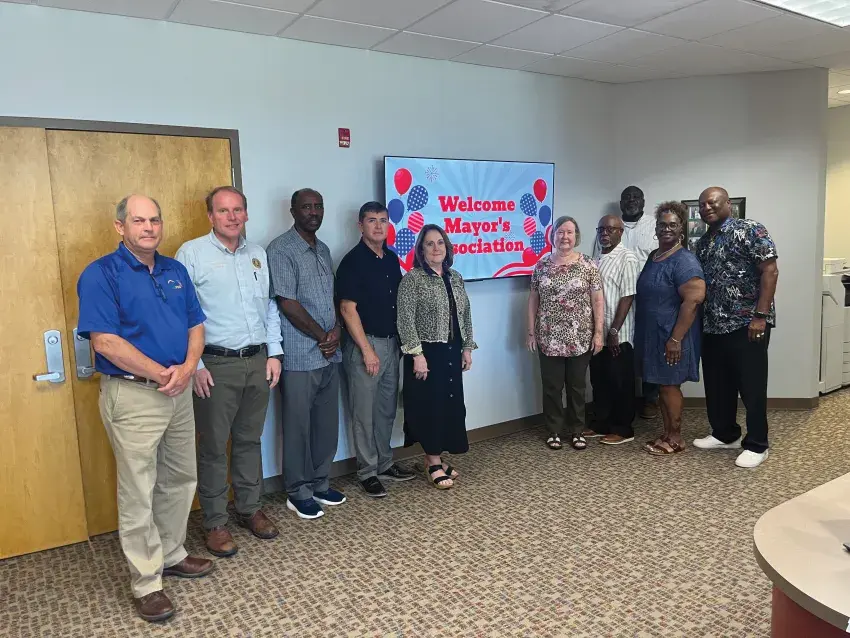 Pictured from left: North Central Planning Assistant Executive Director John Wiggers, NCMA Vice Chairman and North Carrollton Mayor Ken Strachan, NCMA Sergeant at Arms and Duck Hill Mayor Al White, Kosciusko Mayor Tim Kyle, NCMA Chairman and Lexington Mayor Robin McCrory, NCMA Secretary Pam Lee, Charleston Mayor William Shelton, Jr., North Central Planning and Development Grant Administrator Reggie Ross, NCMA Treasurer, Vaiden Mayor Stella Washington Bell, and Grenada Mayor Charles Latham.