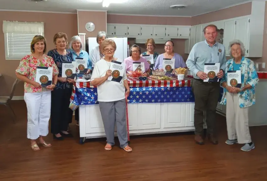 Pictured, from left, Ann Hester, Judy Mainelli, Linda Cook, Linda Rosser, Sylvia White, Jefferson Homemakers Club Vice President Joan Doermer, Susan McGilvra, Janice Whitfield, North Carrollton Mayor Ken Strachan, Jefferson Homemakers Club President Nell Whitfield.