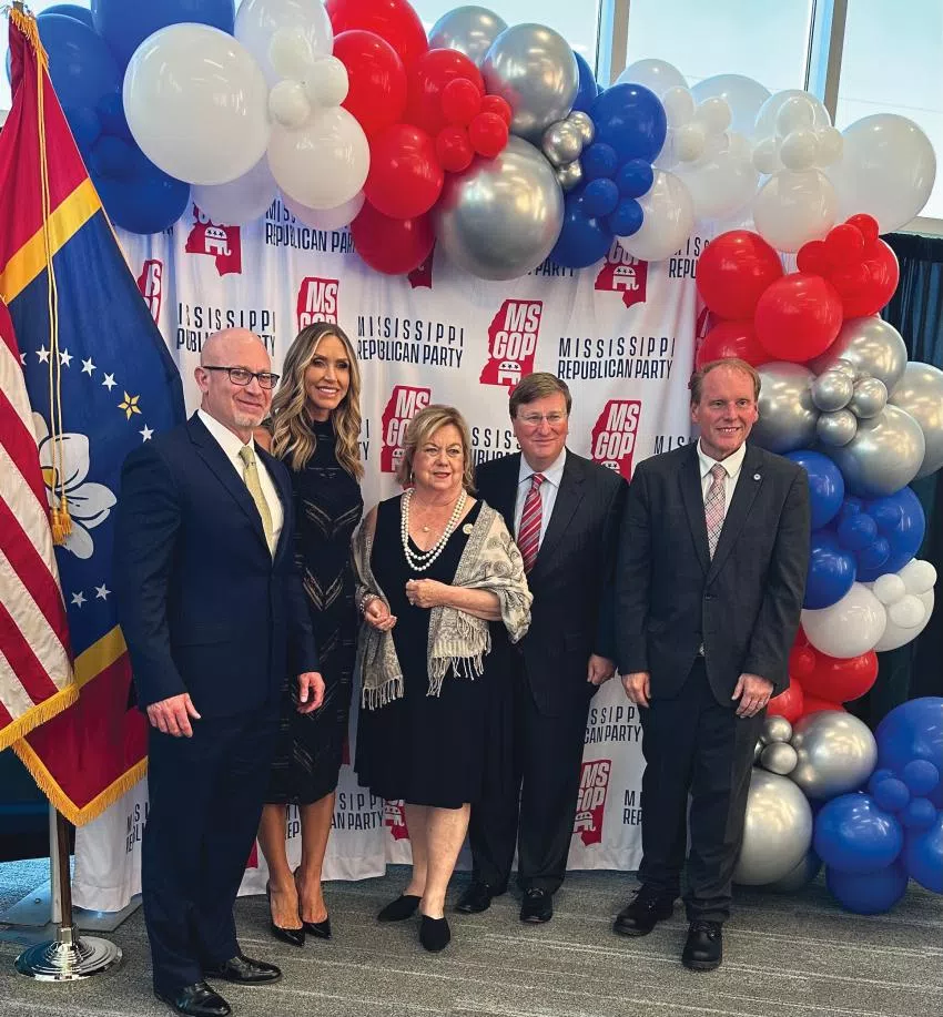 Pictured, from left, Carroll County Republican Executive Committee Vice Chairman J.R. Graves, Co-Chair of the Republican National Committee Lara Trump, Senator Lydia Chassaniol, Governor Tate Reeves, and Carroll County Republican Executive Committee Chairman and North Carrollton Mayor Ken Strachan.
