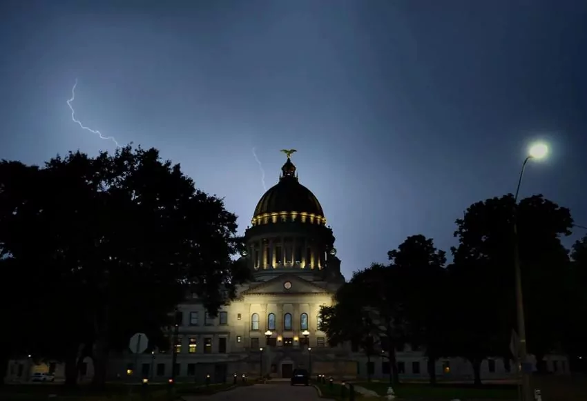 Tony Engle(left) with hemp seed producer GeneSeed in Tennessee and hemp farmer David Singletary examine plant growth at Singletary's farm in Florence, Tuesday, August 3, 2021. Hemp contains cannabidiol (CBD), which does not produce the high associated with tetrahydrocannabinol (THC), in its cousin marijuana. Credit: Vickie D. King/Mississippi Today