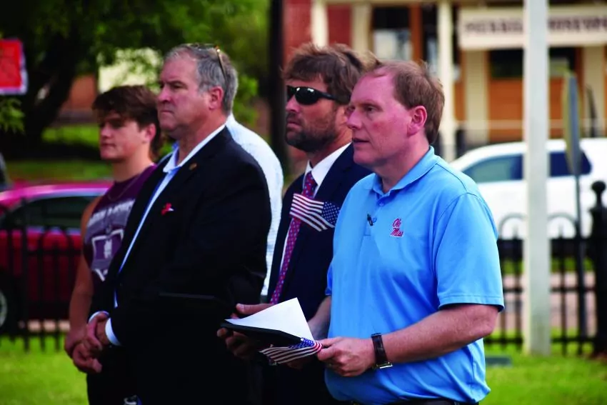 The Third Arrow Chapter, MSSDAR, the Carroll Academy Student Council, sponsored as the Douglas Carroll Junior American Citizens and the Michael H. Ball VFW Post 12191, held the annual Memorial Day Service on the lawn of the Carroll County Courthouse in Carrollton. American flags, flag lapel pins and “Buddy Poppies” were handed out to all in attendance by Carroll Academy students, Landon Turner, Baylor Jackson, Levi Shaw and Jack Grones.