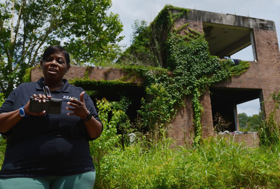 Tucked away in west Jackson right off Capers Avenue are the remains of what used to be housing for people transitioning out of the Mississippi State Hospital. Now, it’s fallen into disrepair, its brick building crumbling and overcome by plastic waste and graffiti.